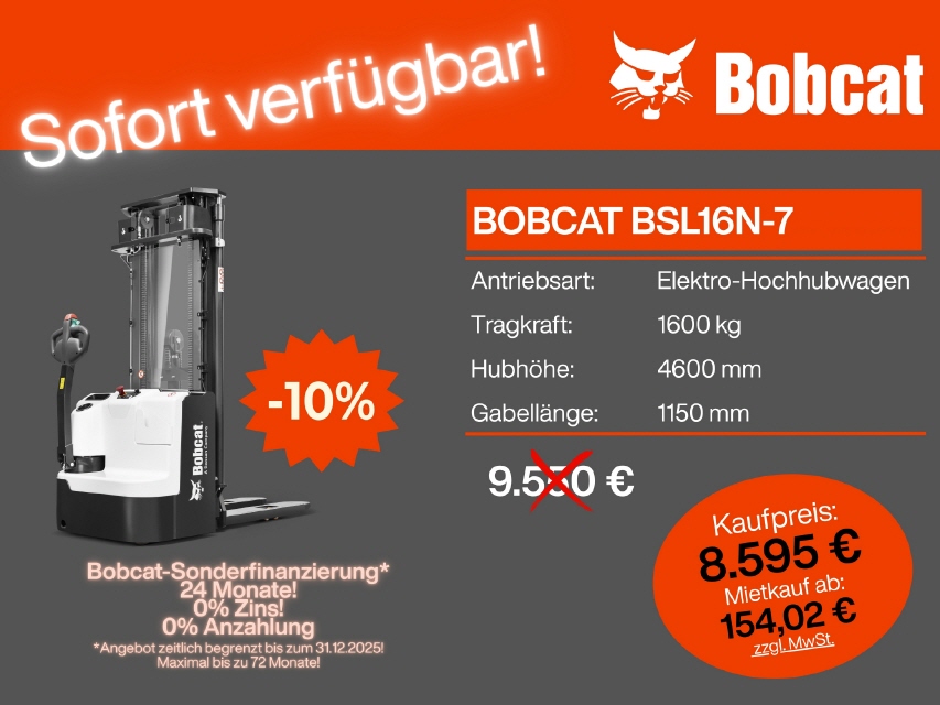 gerne informieren wir Sie über unsere Verkaufsaktion für BOBCAT Gabelstapler und Lagertechnik.
